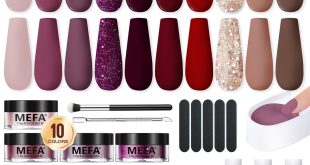 Read More »MEFA Dip Powder Nail Kit Shimmery Purple Burgundy Brown Champange 10 Dark Colors Fall Winter Dipping Powder with Base Top Coat Activator Liquid Set Recycling Tray, French Nail Art Manicure Salon