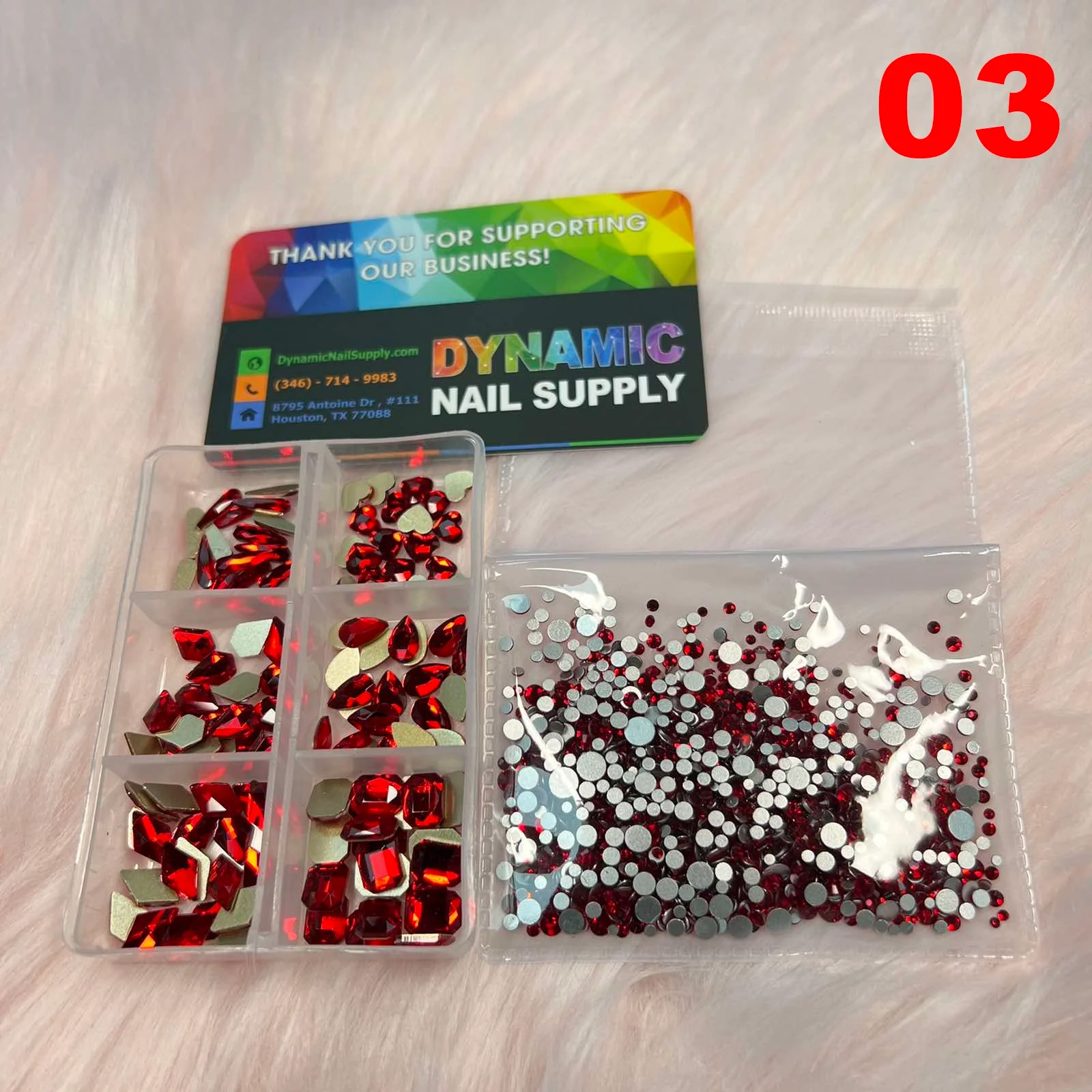 Take your nail art to the next level with the Rhinestone Set from Dynamic Nail Supply. This versatile kit includes 6 large shapes (20 pieces each) and approximately 1,400 mixed-size round rhinestones for endless design possibilities.